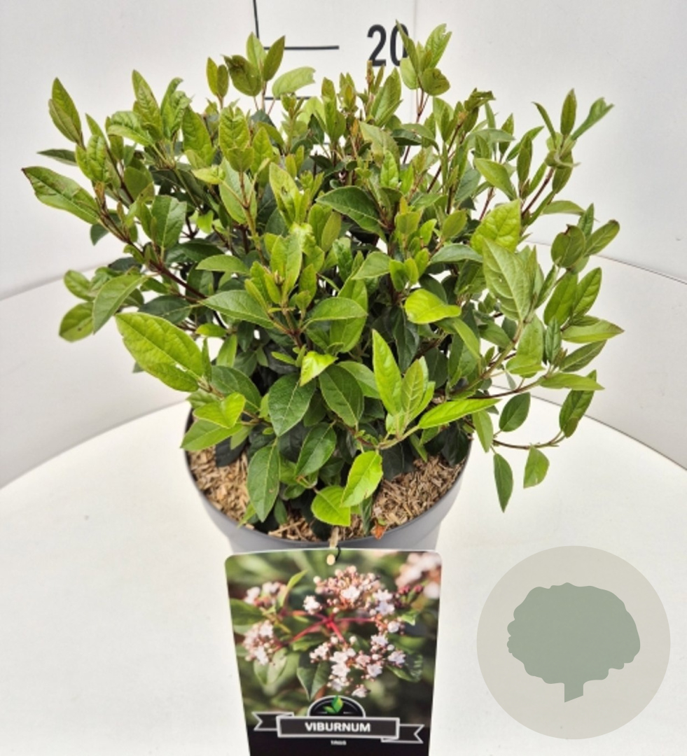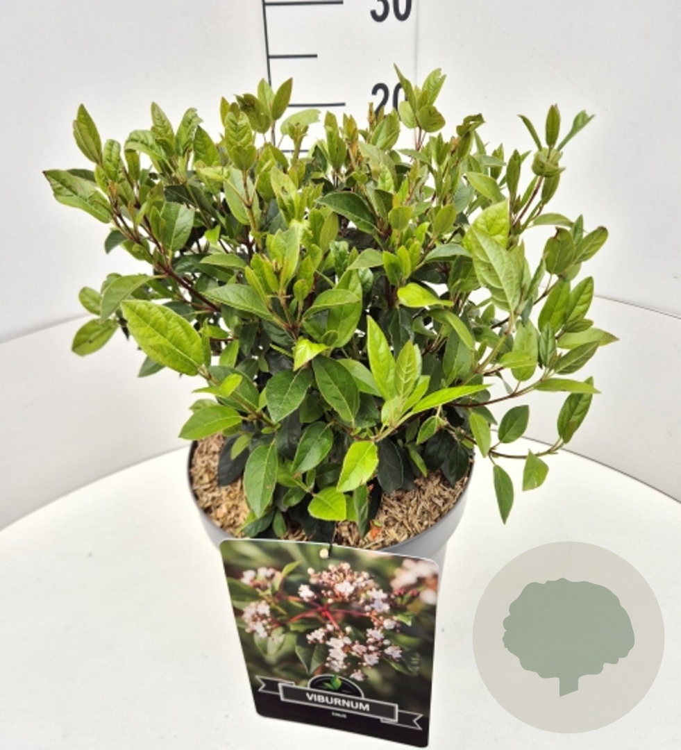| Toelichting | De Viburnum tinus, ook wel Laurierkers genoemd, is een prachtige winterbloeiende heester met witte bloemen en donkergroen blad. Deze plant gedijt goed in zon en halfschaduw op zandgrond, lichte klei of neutrale grond. Ideaal voor een kleurrijke tuin in de koudere maanden. |