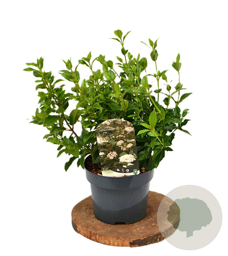 | Toelichting | De Viburnum tinus, ook wel Laurierkers genoemd, is een prachtige winterbloeiende heester met witte bloemen en donkergroen blad. Deze plant gedijt goed in zon en halfschaduw op zandgrond, lichte klei of neutrale grond. Ideaal voor een kleurrijke tuin in de koudere maanden. |