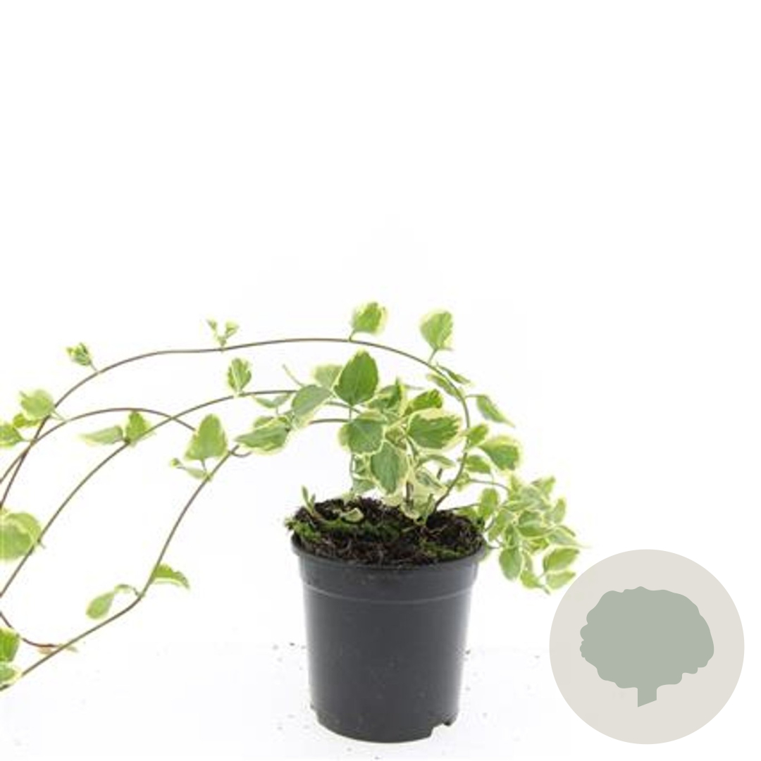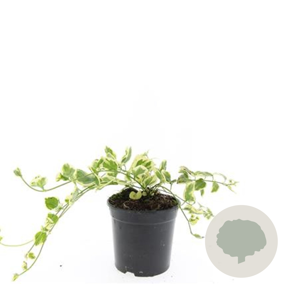 | Toelichting | De Grote maagdenpalm (Vinca major 'Variegata') is een prachtige bodembedekker met blauwe en paarse bloemen. De groen met crème gekleurde bladeren zorgen voor een speels effect. Bloeit van mei tot augustus en gedijt goed in zon en halfschaduw op zand- of neutrale grond. |
