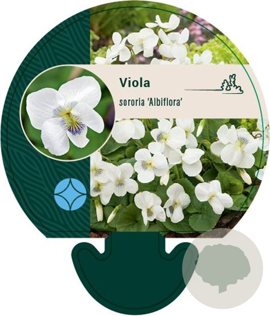 | Toelichting | Het Wilde viooltje (Viola sororia 'Albiflora') is een charmante bodembedekker met witte bloemen en groen blad. Perfect voor de halfschaduw in lichte klei, neutrale of humusrijke grond. Bloeit van april tot juni en wordt ongeveer 15 cm hoog. |