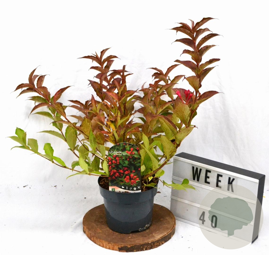 | Toelichting | Weigela All Summer Red is een prachtige struik met rode bloemen die bloeien in mei en juni. De plant wordt ongeveer 150 cm hoog en gedijt goed in zon en halfschaduw op neutrale, voedselrijke grond. Perfect voor een kleurrijke tuin! |