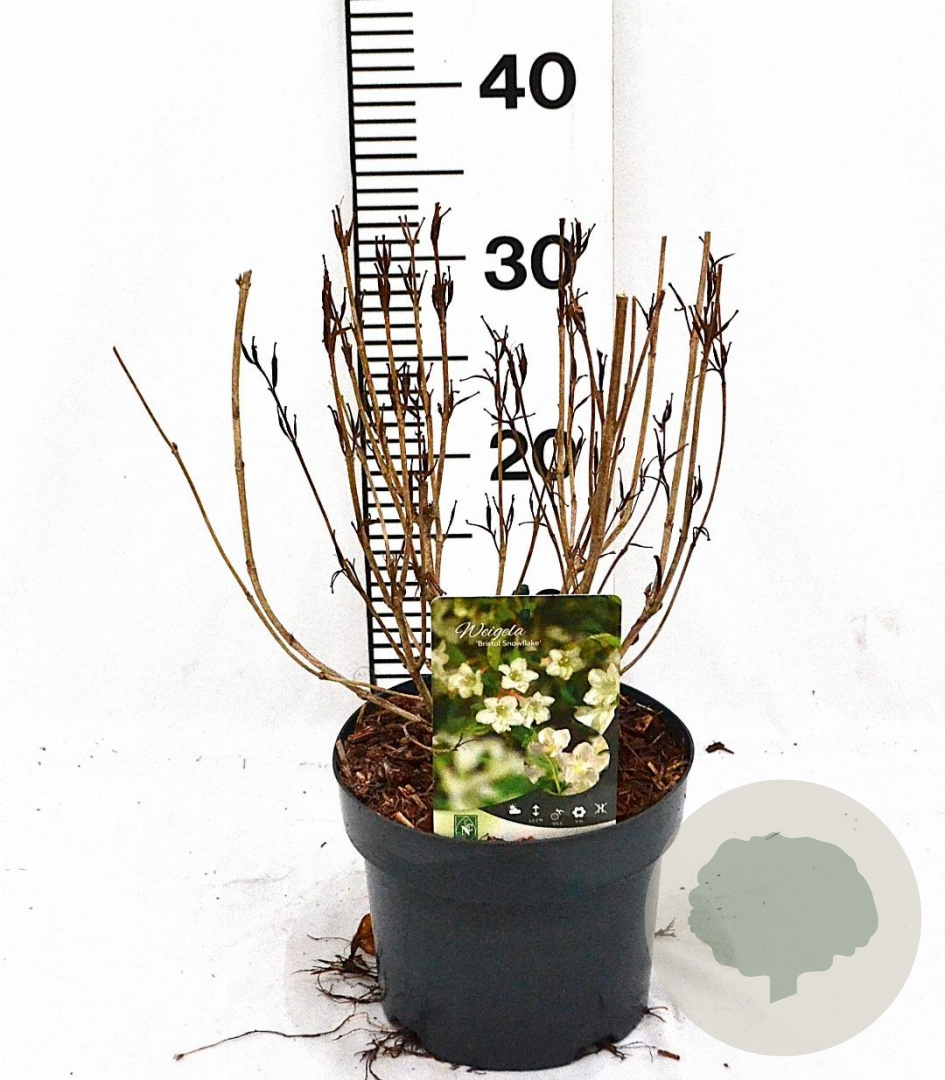 | Toelichting | Weigela 'Bristol Snowflake' is een prachtige struik met witte bloemen in de periode mei-juni. De struik wordt ongeveer 150 cm hoog en gedijt goed in zon en halfschaduw op lichte klei, neutrale grond of goede tuingrond. |
