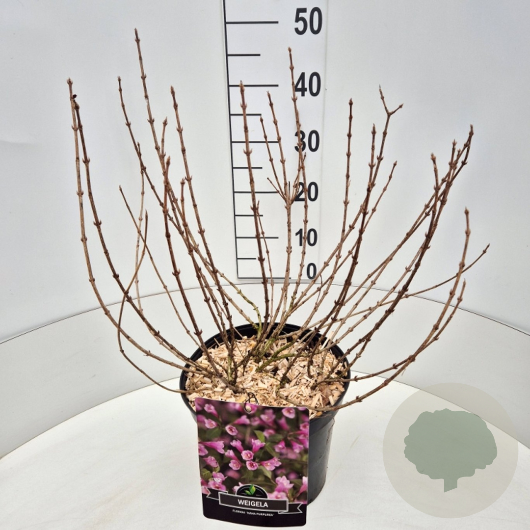 | Toelichting | Weigela is een prachtige struik met donkerpaars blad en roze bloemen in mei - juni. Perfect voor zonnige tot halfschaduwrijke plekken in lichte klei of neutrale, voedselrijke grond. Bereikt een hoogte van 100 - 150 cm. |