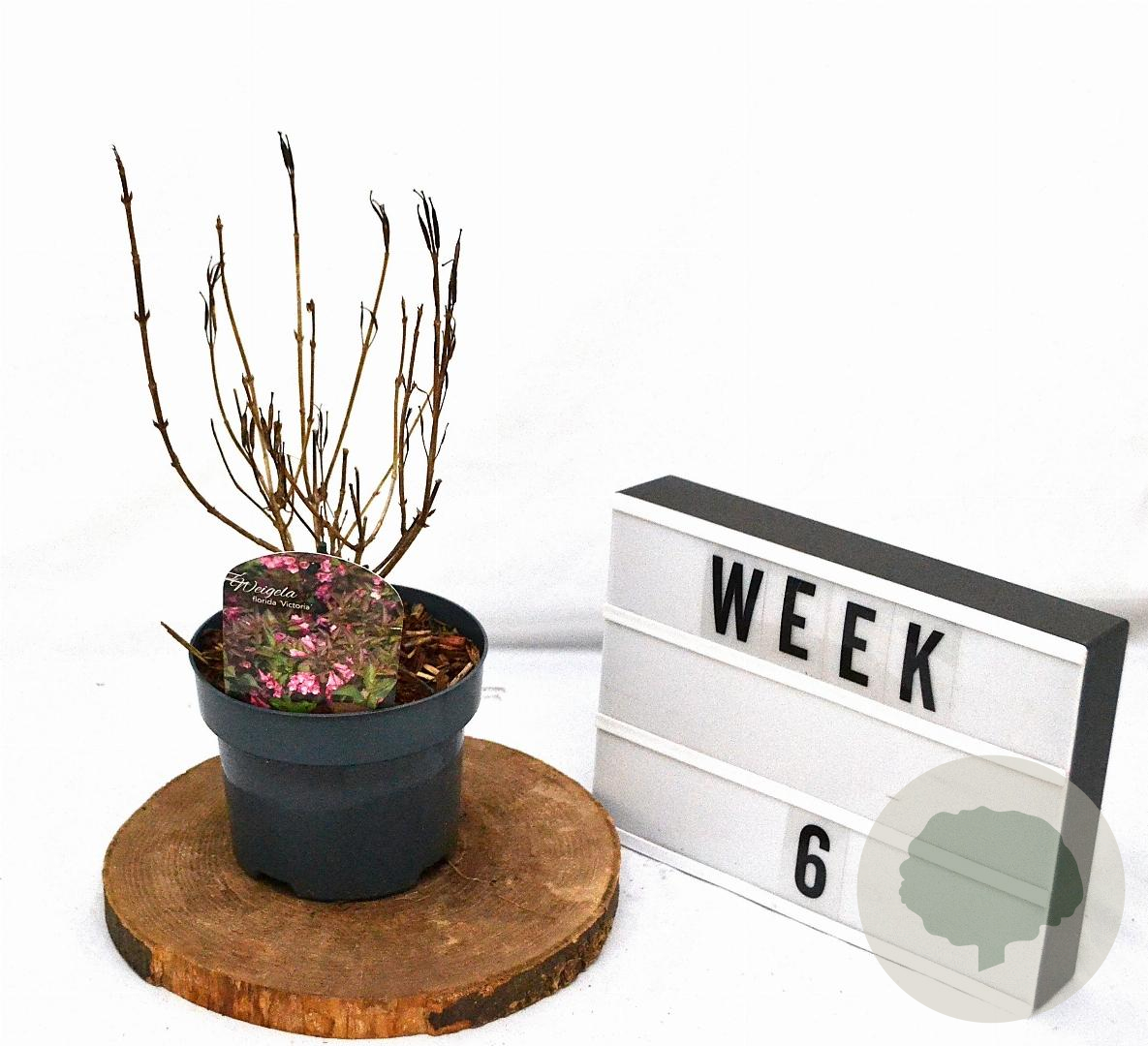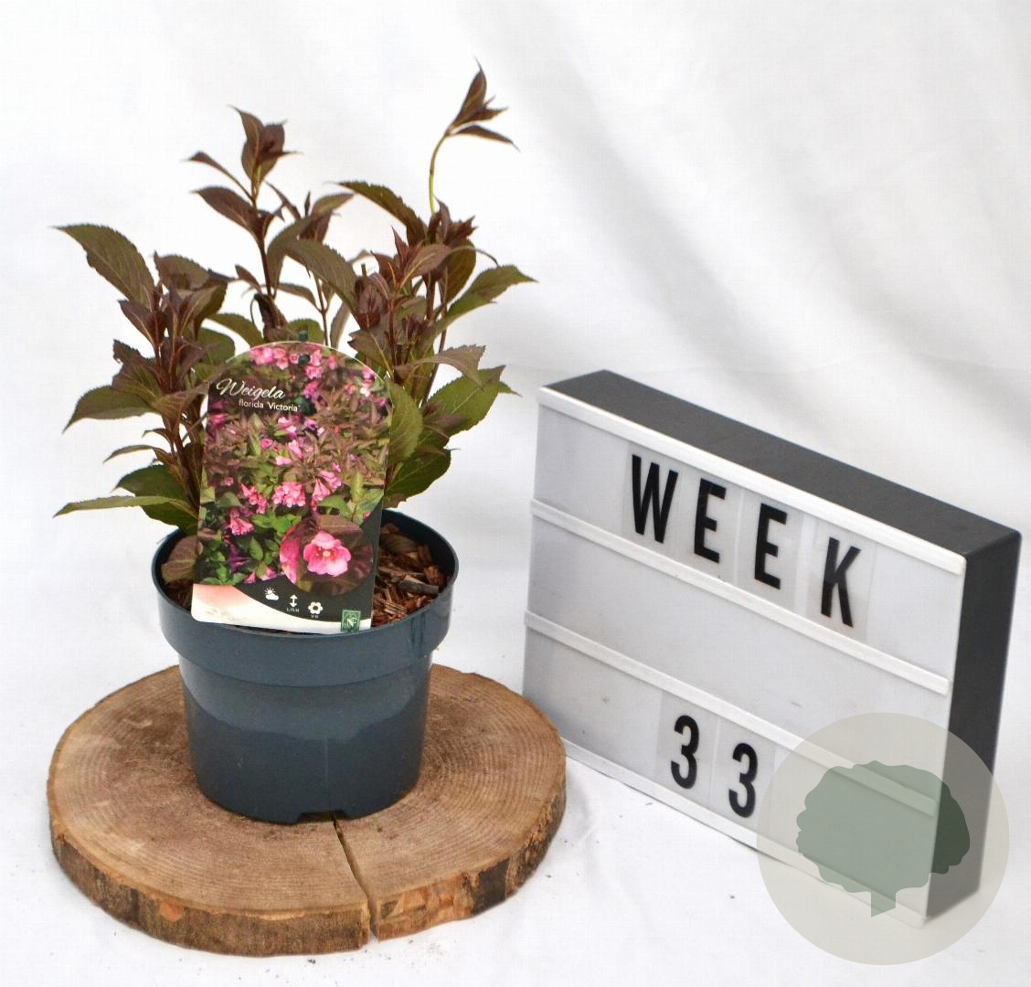 | Toelichting | Weigela, met prachtige roze bloemen in mei en juni, is een mooie aanvulling voor zowel zonnige als halfschaduwrijke tuinen. Deze struik bereikt een hoogte van 150 cm en gedijt goed in lichte klei en neutrale, voedselrijke grond. |
