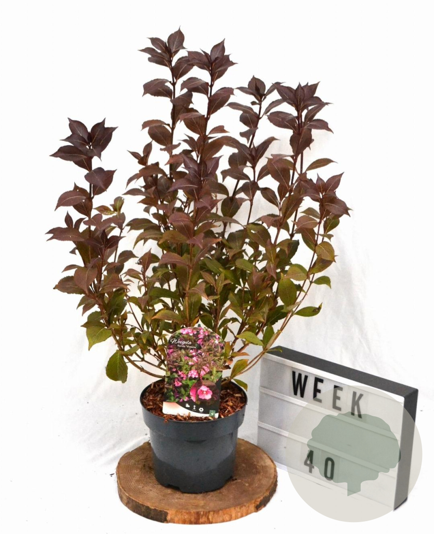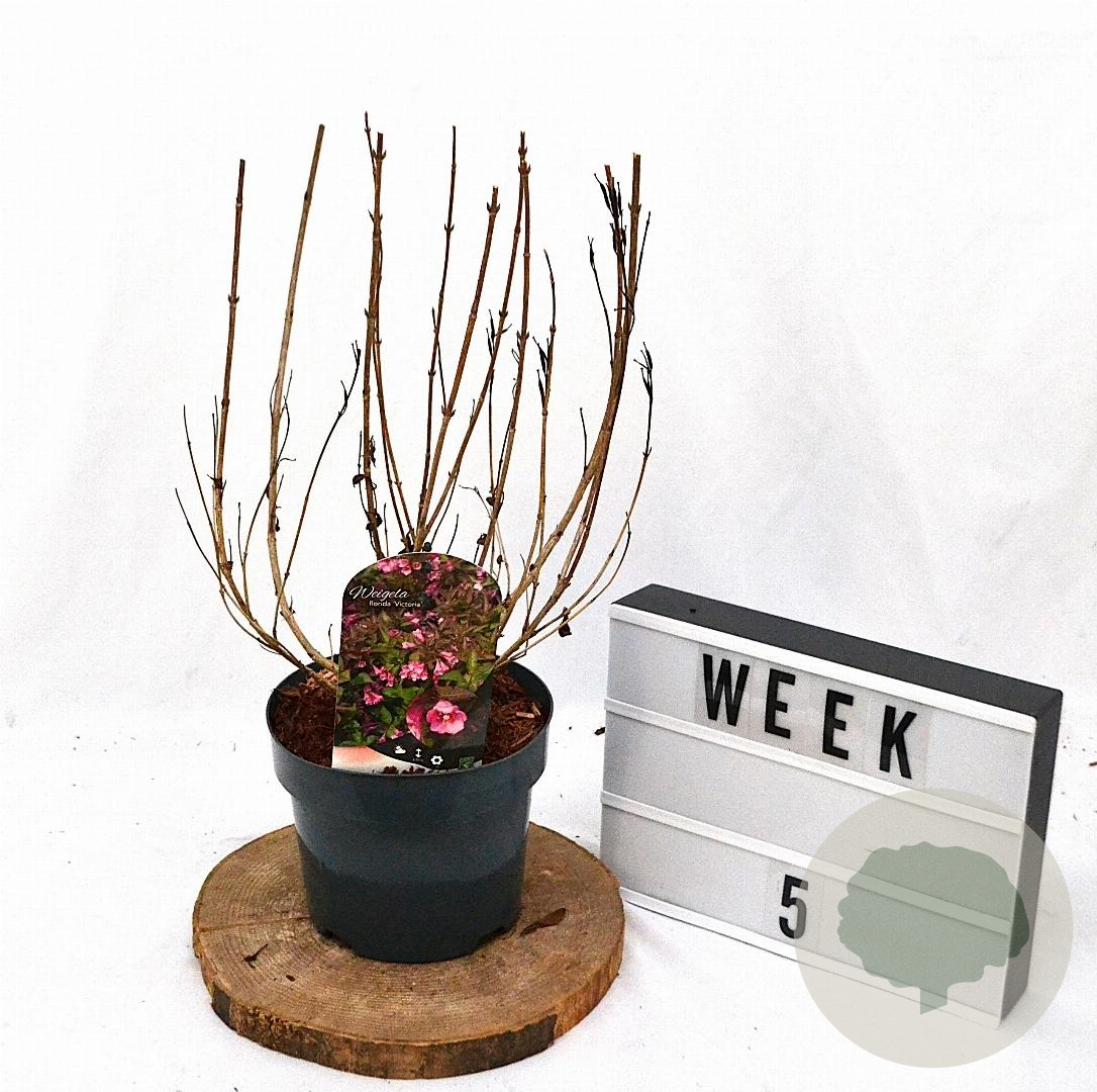| Toelichting | Weigela, met prachtige roze bloemen in mei en juni, is een mooie aanvulling voor zowel zonnige als halfschaduwrijke tuinen. Deze struik bereikt een hoogte van 150 cm en gedijt goed in lichte klei en neutrale, voedselrijke grond. |