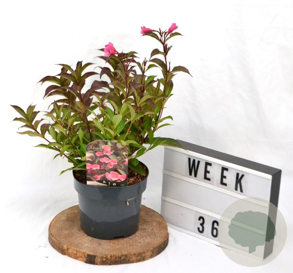 ToelichtingWeigela 'Minuet' is een prachtige heester met roze bloemen in de periode mei-juni. De plant wordt ongeveer 150 cm hoog en gedijt goed in zon en halfschaduw op lichte klei, neutrale of humusrijke grond.