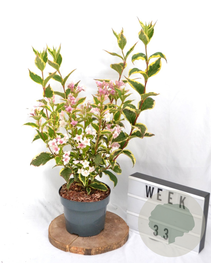 | Toelichting | Weigela 'Nana Variegata' is een compacte struik met groenbont blad en roze bloemen in de periode mei - juni. Deze Weigela gedijt het beste in de zon tot halfschaduw op neutrale, goede tuingrond. Ideaal voor een kleurrijke toevoeging aan de tuin! |