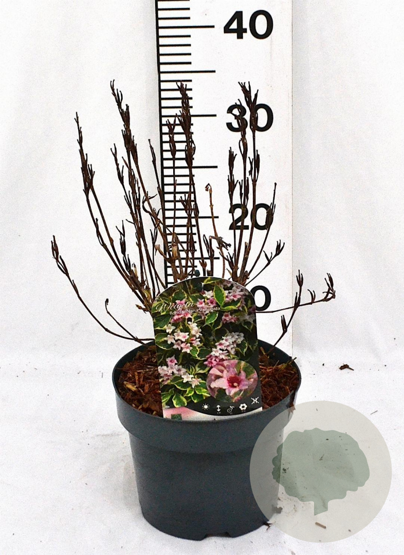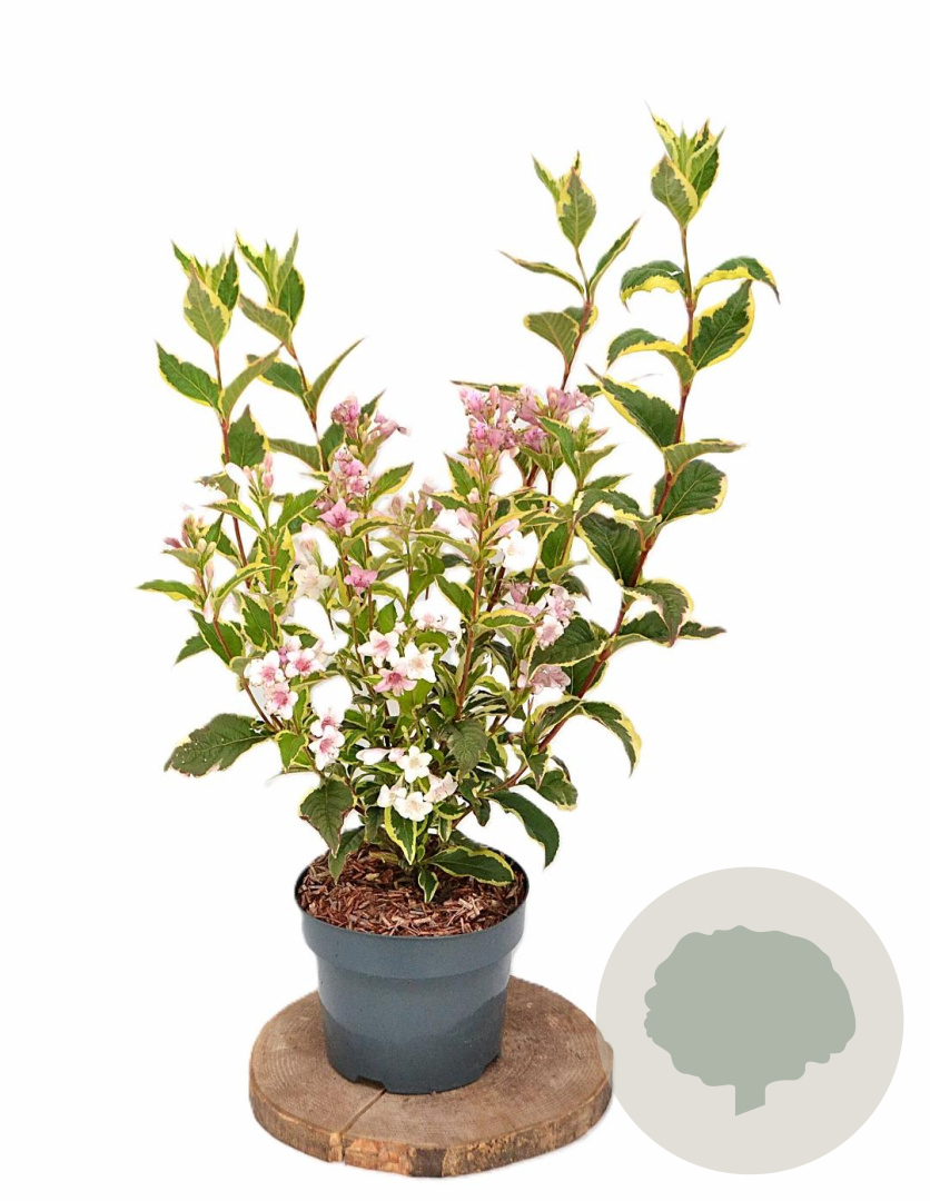 | Toelichting | Weigela 'Nana Variegata' is een compacte struik met groenbont blad en roze bloemen in de periode mei - juni. Deze Weigela gedijt het beste in de zon tot halfschaduw op neutrale, goede tuingrond. Ideaal voor een kleurrijke toevoeging aan de tuin! |