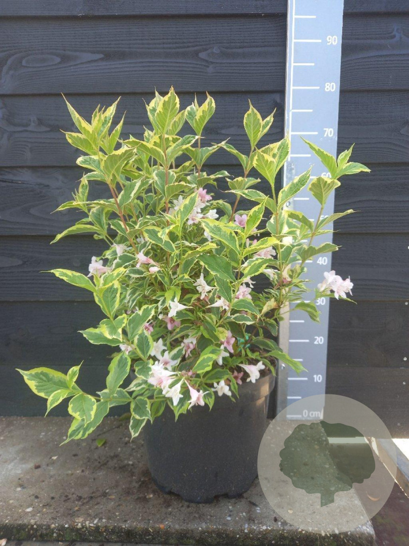 | Toelichting | Weigela 'Nana Variegata' is een compacte struik met groenbont blad en roze bloemen in de periode mei - juni. Deze Weigela gedijt het beste in de zon tot halfschaduw op neutrale, goede tuingrond. Ideaal voor een kleurrijke toevoeging aan de tuin! |