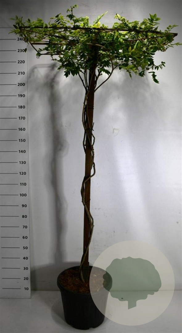 | Toelichting | De Blauwe regen (Wisteria brach. 'Okayama') is een prachtige klimplant met lange trossen blauw en paarse bloemen. Deze bloeien in de maanden mei en juni en staan het liefst op een zonnige tot halfschaduwrijke plek in lichte klei, zure of humusrijke grond. |