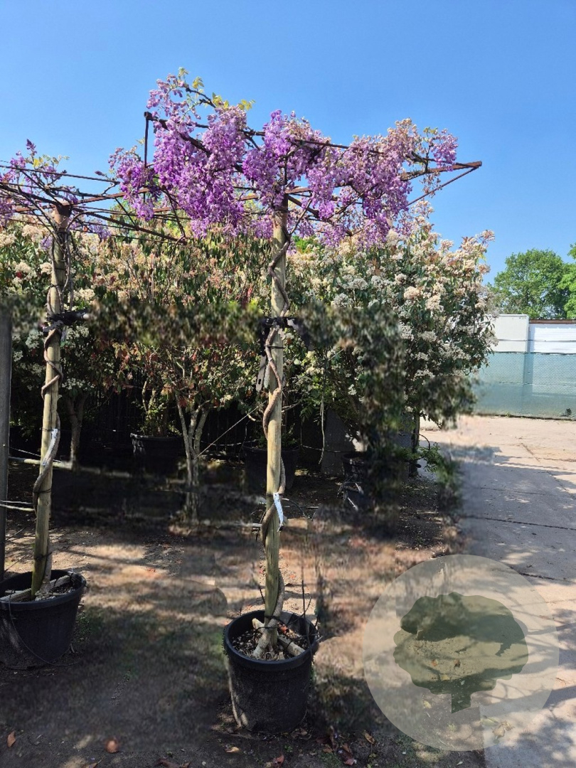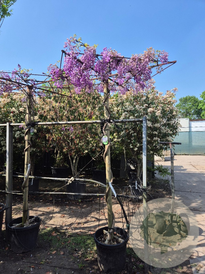 | Toelichting | De Blauwe regen (Wisteria brach. 'Okayama') is een prachtige klimplant met lange trossen blauw en paarse bloemen. Deze bloeien in de maanden mei en juni en staan het liefst op een zonnige tot halfschaduwrijke plek in lichte klei, zure of humusrijke grond. |