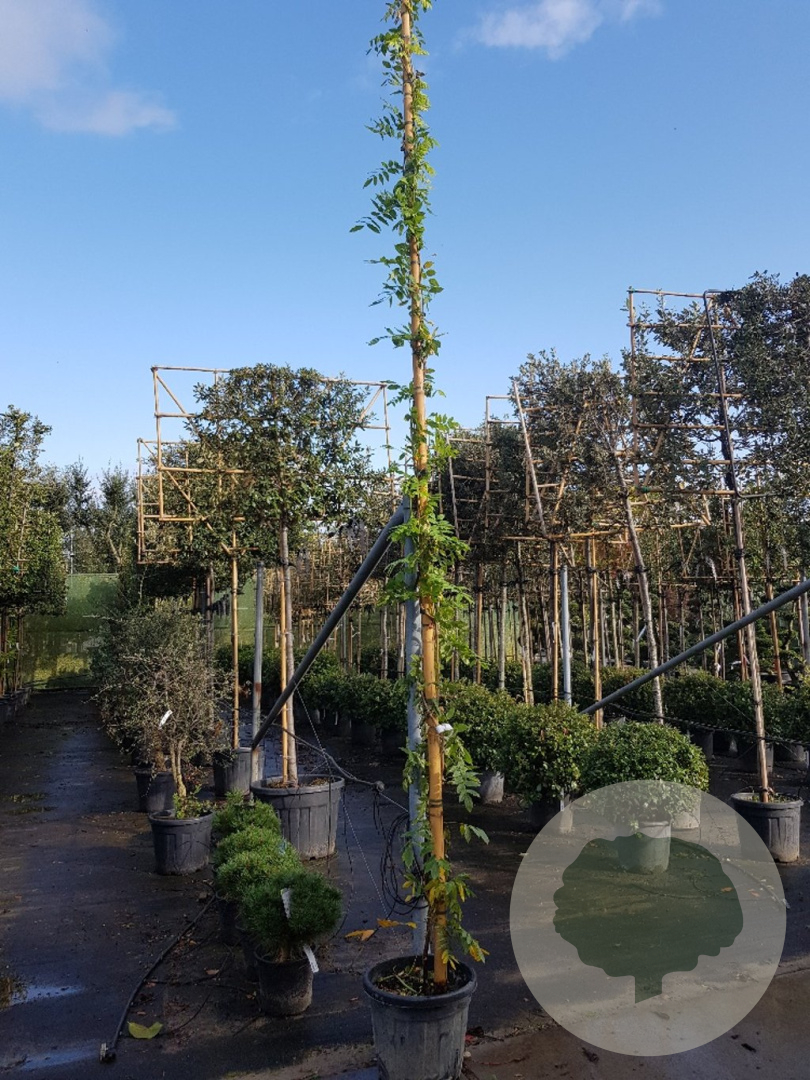 | Toelichting | De Blauweregen (Wisteria flor. 'Shiro-noda') is een prachtige klimplant met blauwe en witte bloemen die bloeien in mei en juni. Deze plant gedijt het beste in zonnige tot halfschaduwrijke standplaatsen met goed doorlatende, voedselrijke grond. |