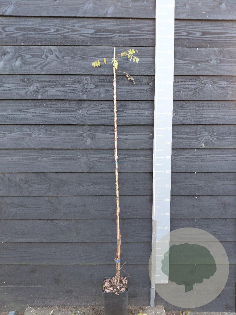 | Toelichting | De Blauwe regen (Wisteria frut. 'Amethyst Falls') is een prachtige klimplant met paarse bloemen die bloeit in mei en juni. Deze plant gedijt het beste in zon en halfschaduw op zandgrond, lichte klei of neutrale grond. Bereikt een volwassen hoogte van 300 cm. |