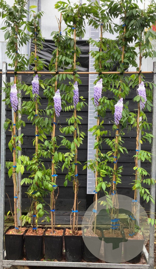 | Toelichting | De Blauweregen (Wisteria sinensis 'Prolific') is een prachtige klimplant met paarse bloemen die bloeien in mei en juni. Deze plant gedijt het beste in de zon of halfschaduw op lichte klei, zure of humusrijke grond. De volwassen hoogte kan oplopen tot 600 cm. |
